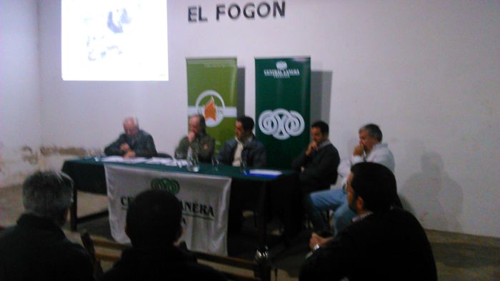 En la charla disertaron el Sr. Felipe Sanguinetti (Directivo de CLU), el Dr. Alejandro Nin (Directivo de Lanera Piedra Alta – LPA), el Ing. Carlos Rodriguez (Gerente LPA), el Ing. Agr. Martin Riso (Jefe. Depto. de Promoción CLU) y el Tec. Agr. Santiago de Crecenzio (Promotor CLU).